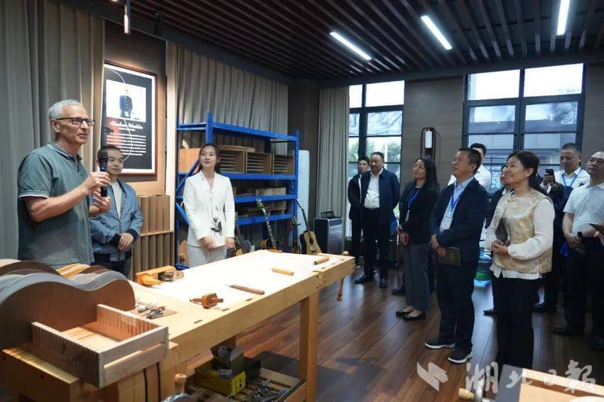 觀摩團一行深入松滋市文化創(chuàng)新產(chǎn)業(yè)園,聽取關(guān)于該市通過優(yōu)化營商環(huán)境、吸引優(yōu)質(zhì)項目、培育產(chǎn)業(yè)集群,推動文化創(chuàng)意產(chǎn)業(yè)從無到有、快速發(fā)展的歷程介紹。在桐馨樂器,觀摩團走進生產(chǎn)車間和產(chǎn)品展廳,與企業(yè)負責人、世界級吉他制作大師亞伯拉罕等技術(shù)專家進行現(xiàn)場交流,詳細了解松滋市吉他等特色文化產(chǎn)品的研發(fā)設(shè)計、生產(chǎn)工藝、市場銷售及品牌建設(shè)情況。